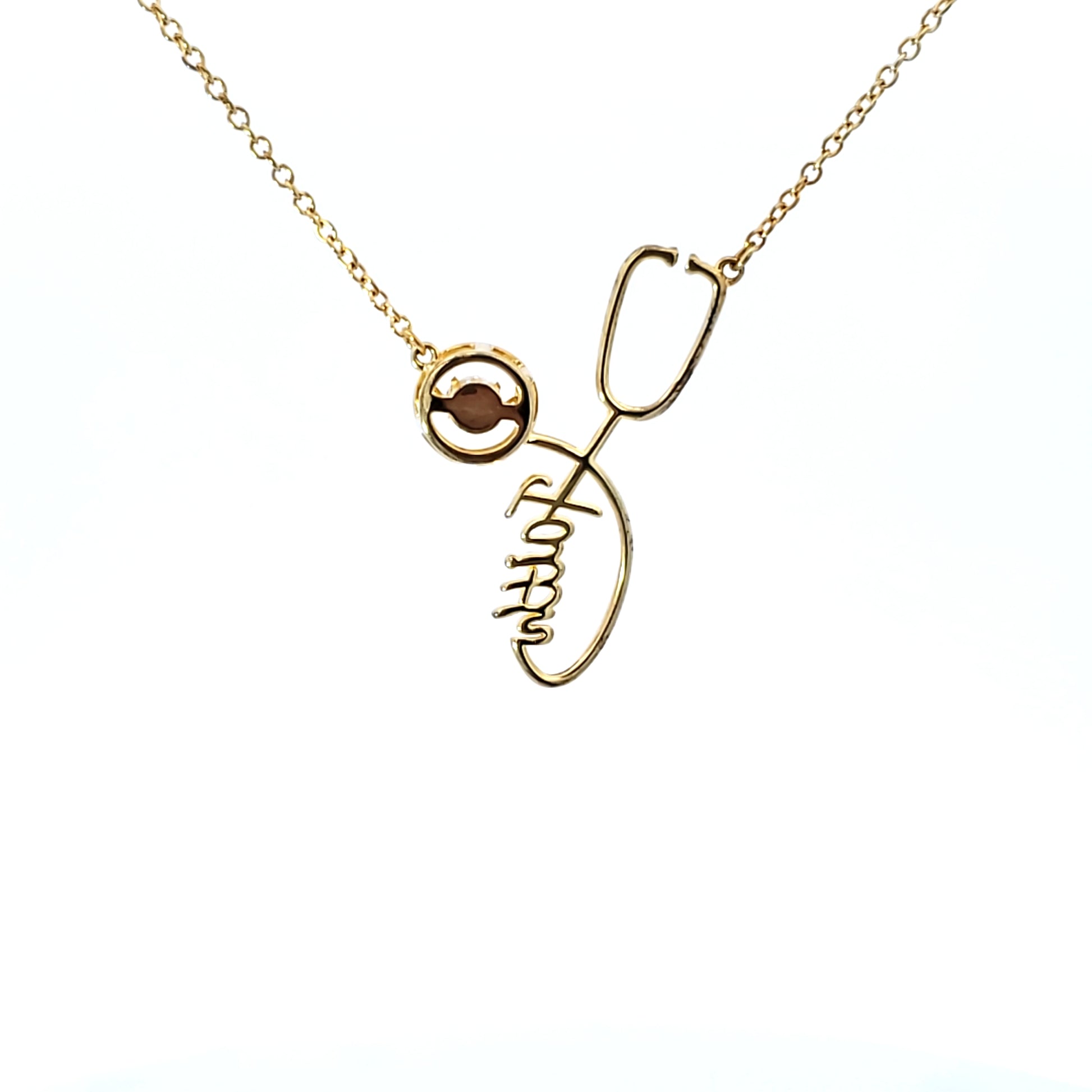 SS YG Plated Stethoscope CZ Faith Necklace