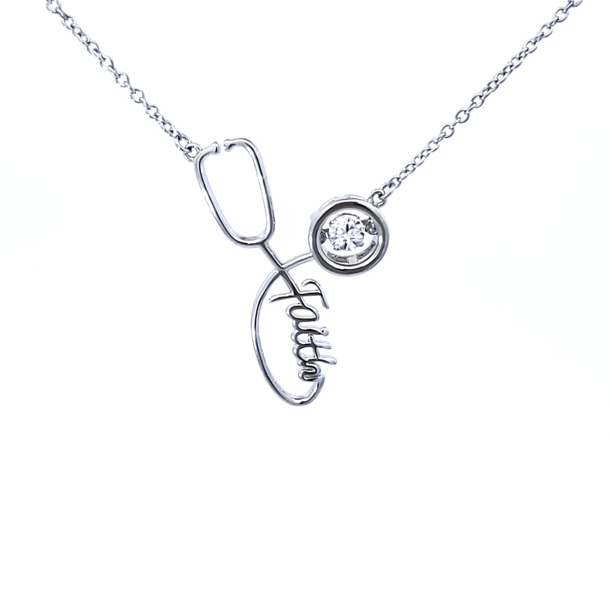SS Stethoscope CZ Faith Necklace