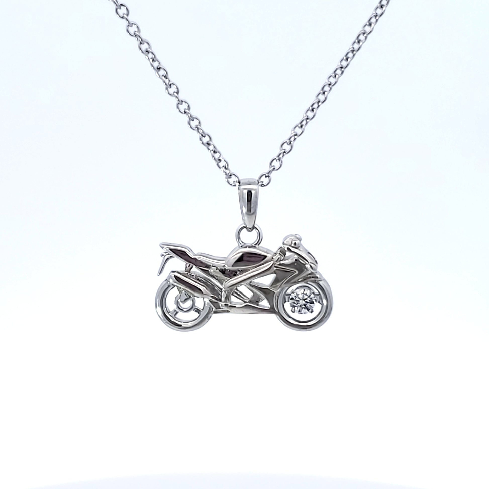 SS Twinkle CZ Mortorcycle Necklace